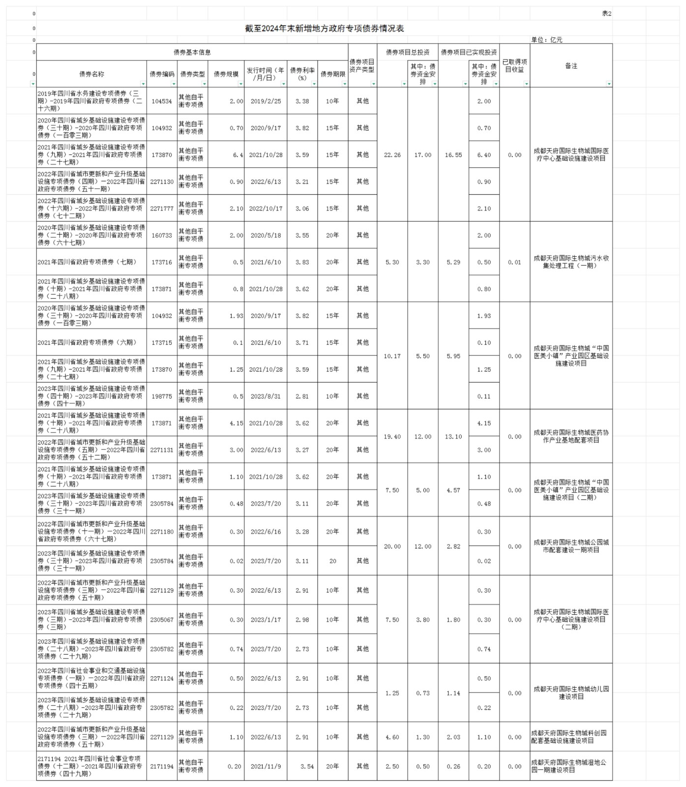 2024年成都天府國際生物城發(fā)展集團(tuán)有限公司新增地方政府專項債券情況